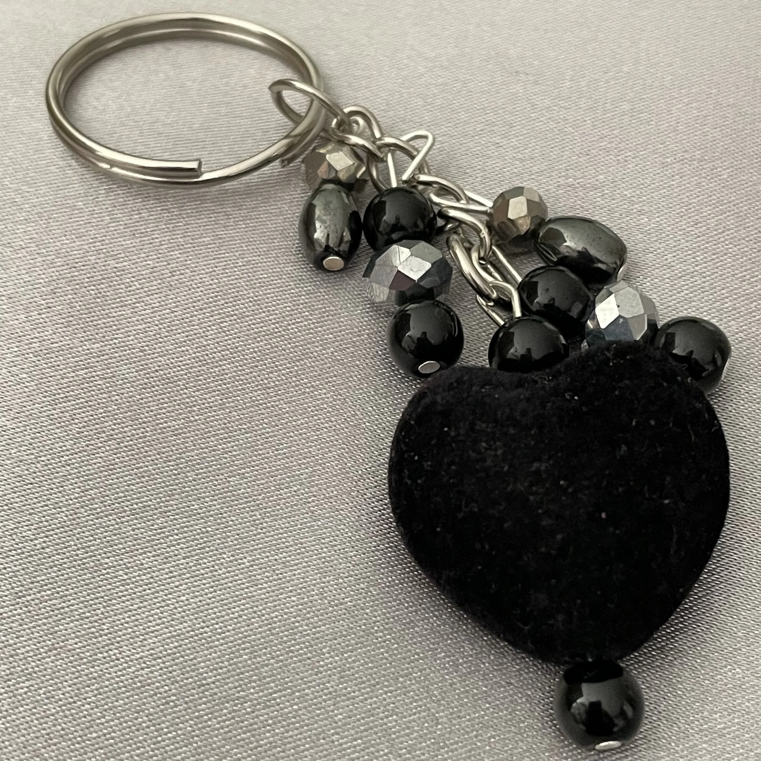 Keychains › Silver and Black Beaded Silver Keychain W/Black Velvet Heart Charm Image 1 of 1 Silver and Black Beaded Silver Keychain W/Black Velvet Heart Charm $5.00 Add To Cart Added!